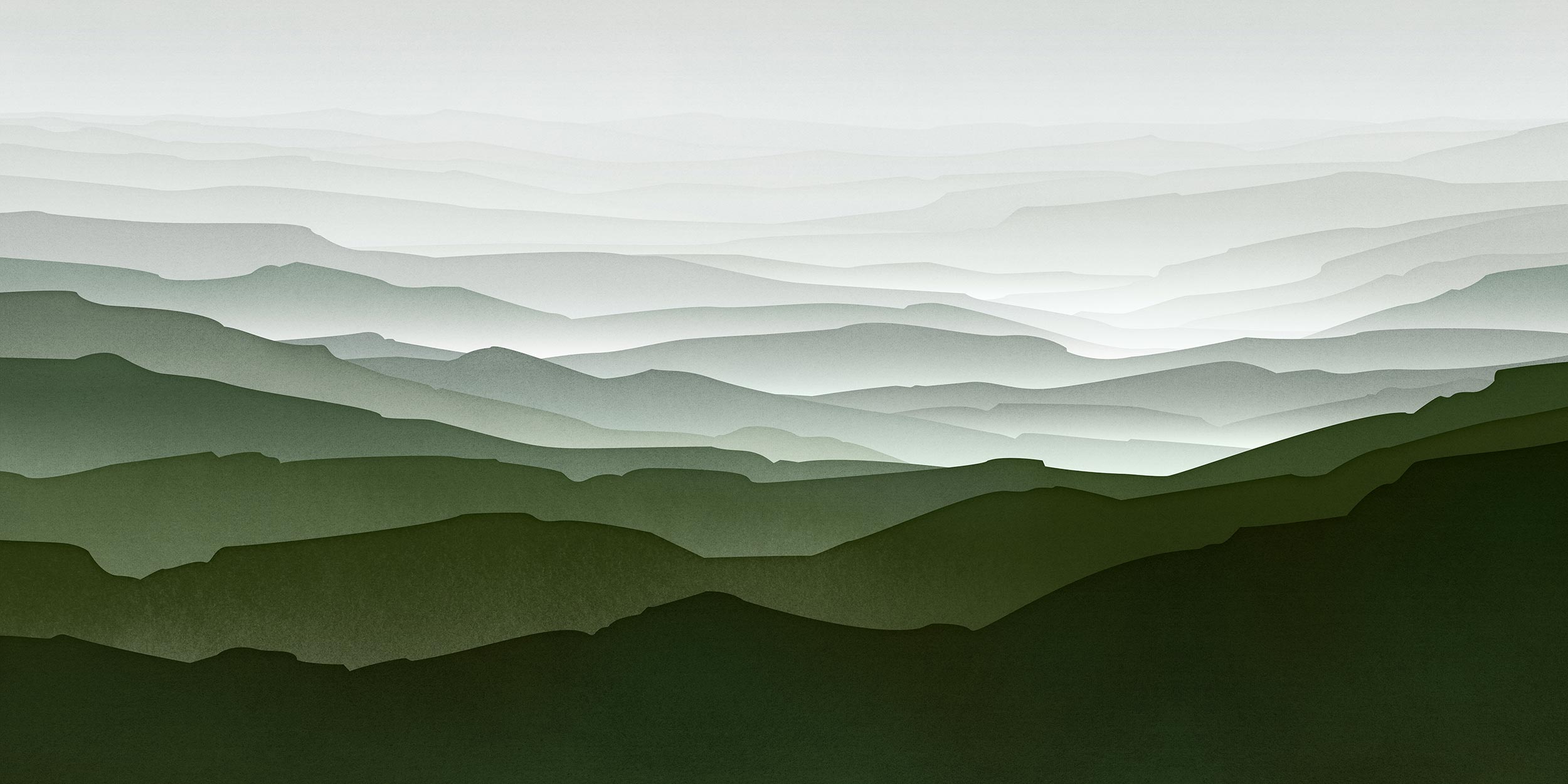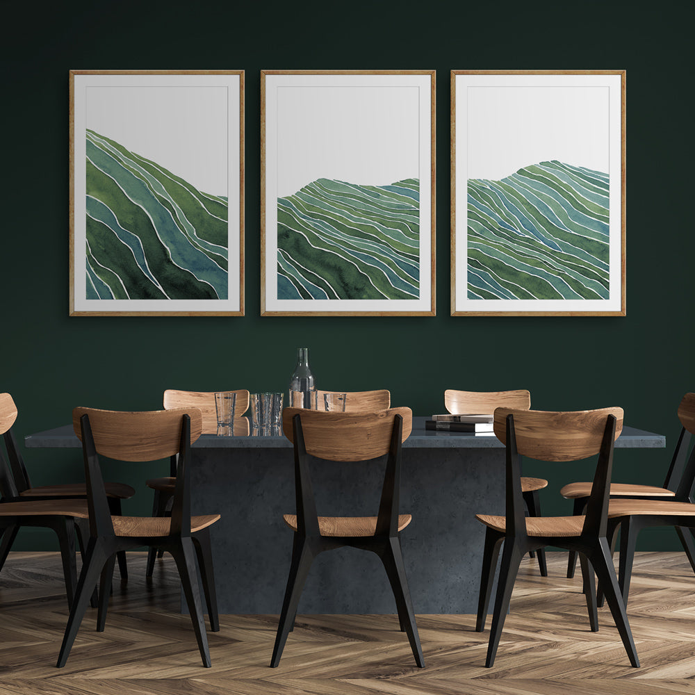 Midcentury Green Mountain Valley – Three Piece Art Print