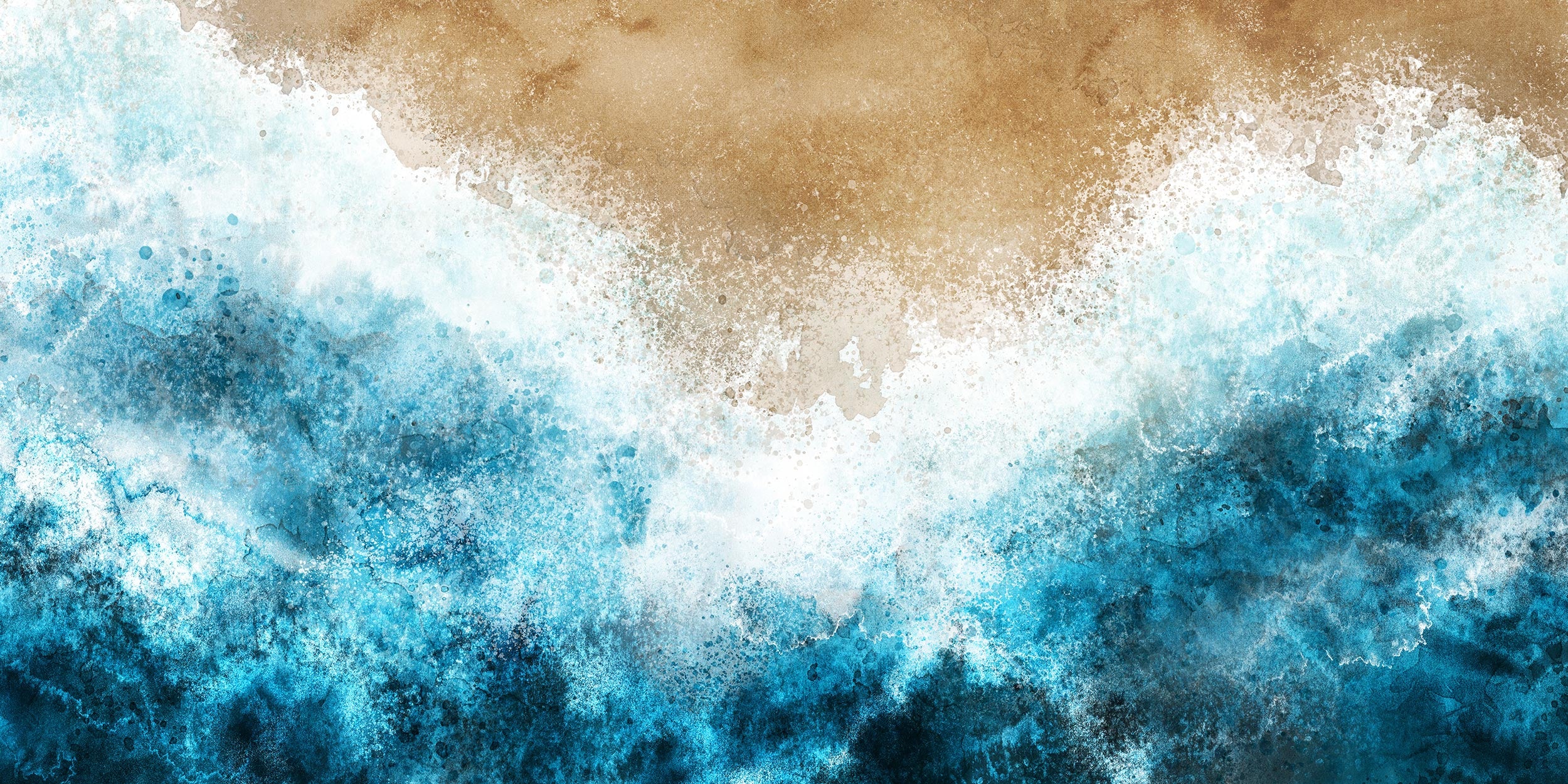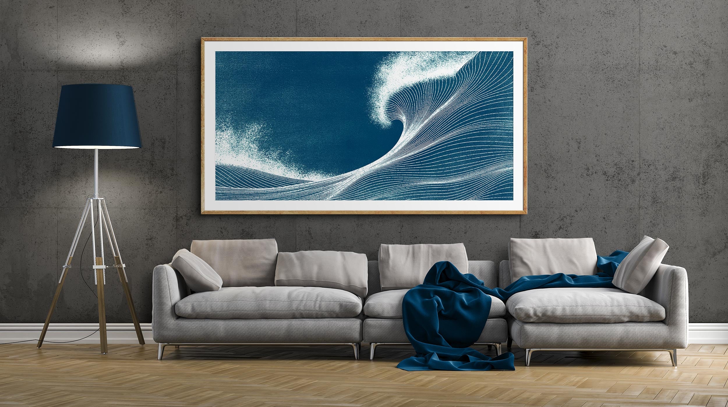 Woodcut Blue Ocean Wave – Three Piece Art Print